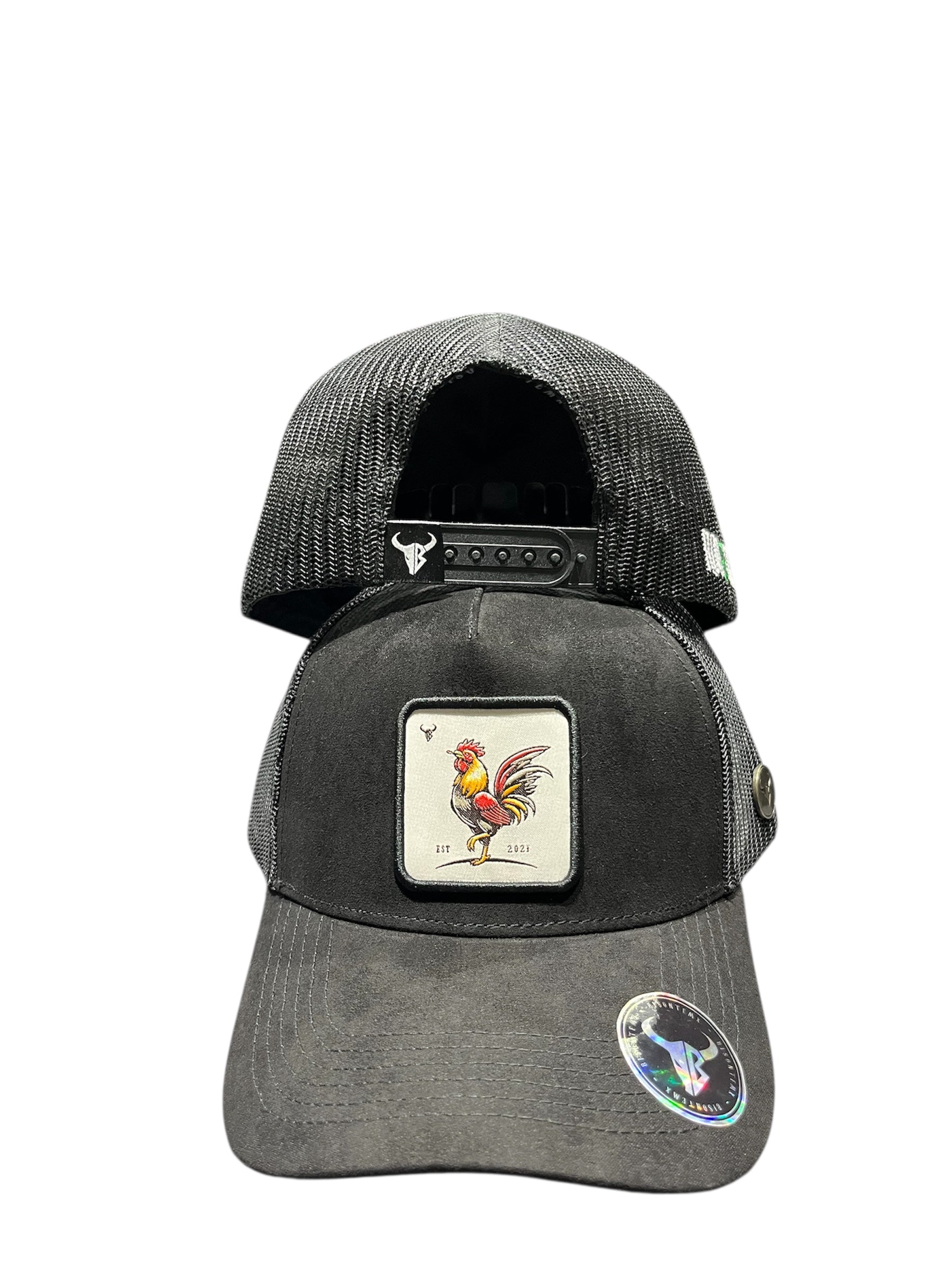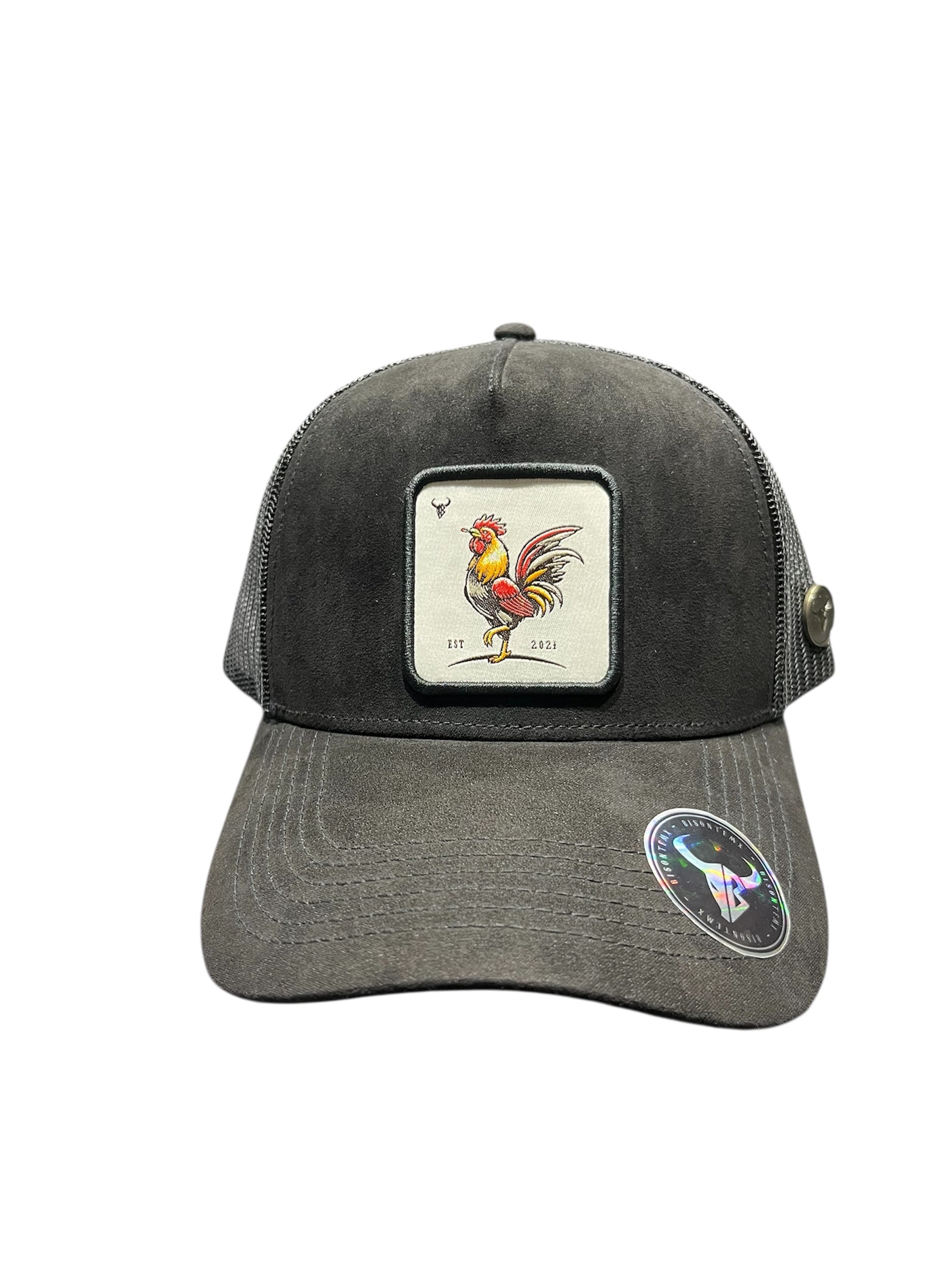 Confeccionada en materiales de textura suave y tono ahumado, ofrece un estilo auténtico y versátil. Su parche frontal, bordado con precisión, da vida a un gallo imponente que se convierte en emblema de carácter y pertenencia. La malla posterior permite una ventilación óptima, ideal para los días intensos.